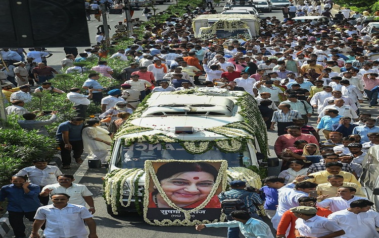 | 9 | Sushma Swaraj's last rites performed with full state honours | Hundreds of people, including Prime Minister Narendra Modi, BJP president Amit Shah and veteran party leader L K Advani, bid farewell to former external affairs minister Sushma Swaraj as her mortal remains were consigned to flames in Delhi yesterday. |