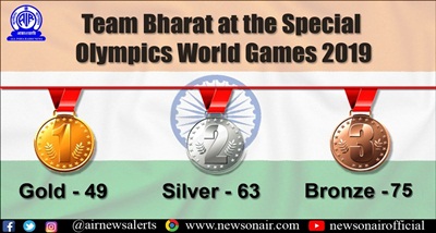 | 8 | India bags 188 medals at Special Olympics World Games | India has so far won a total of 188 medals at the Special Olympics World Games in Abu Dhabi. |