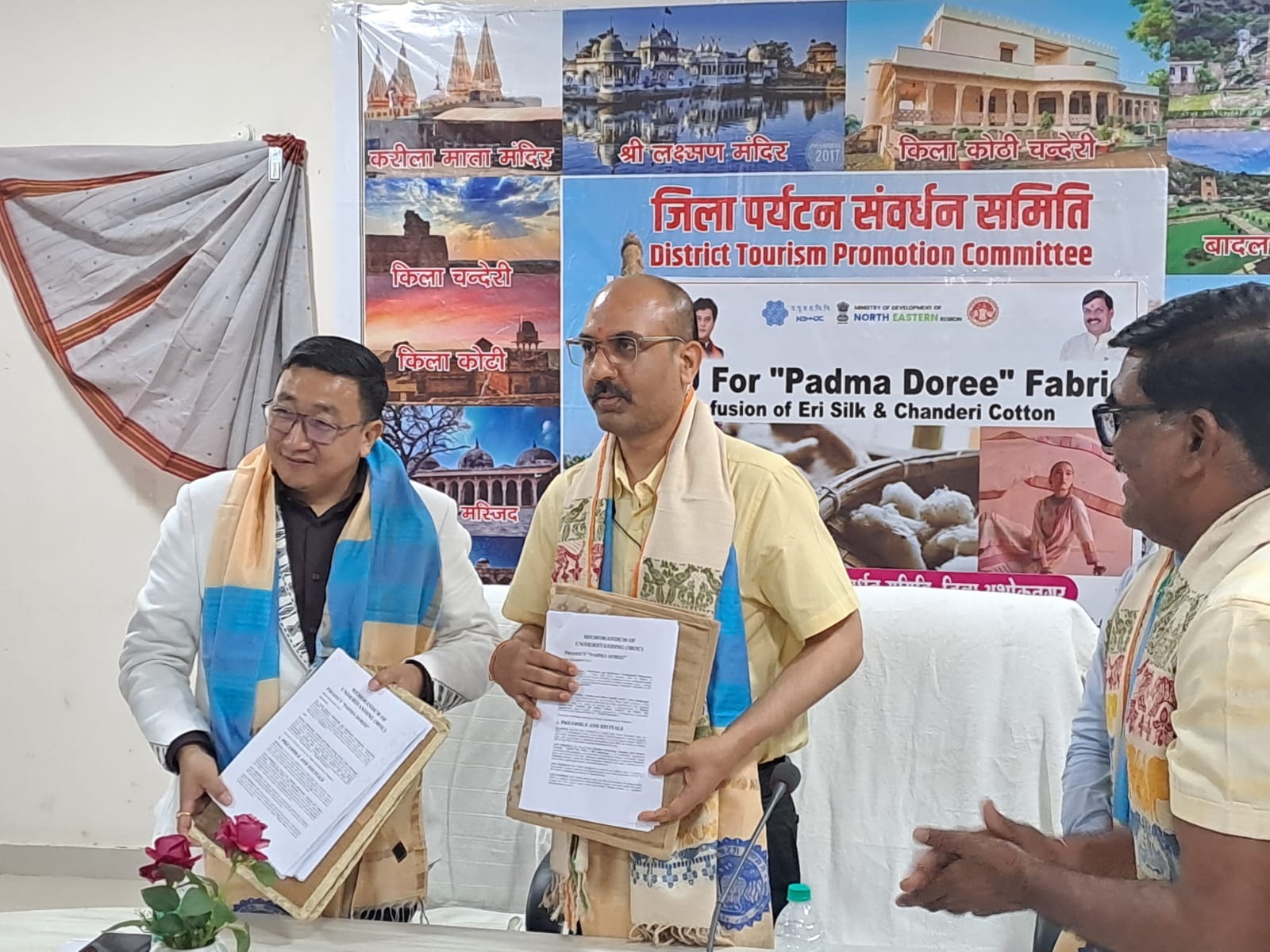 | 8 | NEHHDC Signs Strategic MoU with DATCC Ashoknagar to Launch "Project Padma Doree" | In a landmark initiative spearheaded by Union Minister Shri Jyotiraditya Scindia, a new chapter has begun for the weavers of Chanderi. A strategic Memorandum of Understanding (MoU) was signed at the Handloom Park between the North Eastern Handicrafts and Handlooms Development Corporation (NEHHDC) and the District Archaeology, Tourism and Culture Council (DATCC), Ashoknagar, to launch "Project Padma Doree". The agreement was executed by Shri Mara Kocho, Managing Director of NEHHDC, and Shri Saket Malviya, District Collector and Chairman of DATCC. A Fusion of Heritage and Innovation "Project Padma Doree" is set to introduce a premium line of textiles that blends the rustic, "Ahimsa" (non-violent) Eri Silk of the North East with the world-renowned Chanderi Weaving technique. |