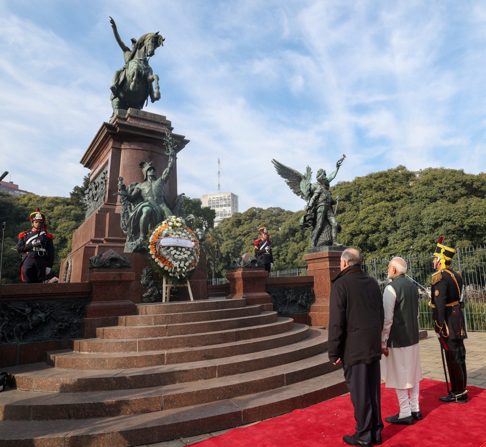 | 10 | PM Modi begins historic Argentina visit by paying tribute to country’s liberator | Prime Minister Narendra Modi on Saturday began his historic visit to Argentina by paying respects at the statue of General Jose de San Martin, the country’s revered freedom fighter and national hero, in Buenos Aires. PM Modi laid a wreath and paid tribute at the San Martin Memorial, marking the first bilateral visit by an Indian Prime Minister to the South American nation in 57 years. General Jose de San Martin is recognised as the liberator of Argentina, and the monument was created in 1862 by French sculptor Louis Joseph Daumas. It was the first equestrian statue in Buenos Aires. San Martin led crucial phases of Argentina’s struggle for independence between 1813 and 1818 — defeating Spanish forces at the Battle of San Lorenzo, reorganising the Army of the North, becoming Governor of Cuyo, and creating the Army of the Andes, which he led across the mountains into Chile to liberate the neighbouring country from Spanish rule. He later moved north to help liberate Peru in 1820. |