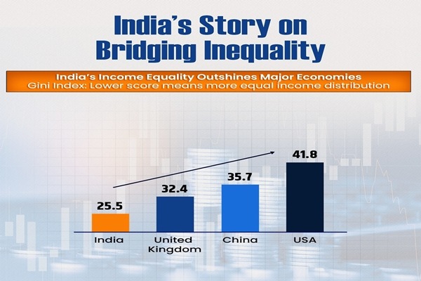 | 9 | World Bank ranks India 4th among the world’s Most Equal Societies | World Bank has placed India among world’s Most Equal Societies. According to the World Bank, India’s Gini Index stands at 25.5, making it the fourth most equal country in the world, after the Slovak Republic, Slovenia and Belarus. The Gini Index is a simple yet powerful way to understand how income, wealth or consumption is equally distributed across households or individuals in a country. India falls into the “moderately low” inequality category, which includes Gini scores between 25 and 30. India is only a fraction away from joining the “low inequality” group, which includes countries like the Slovak Republic with a score of 24.1, Slovenia at 24.3, and Belarus at 24.4. Apart from these three, India has a better score than all the other 167 countries for which the World Bank has released data. India’s score is much lower than China’s 35.7 and far lower than the United States, which stands at 41.8. |
