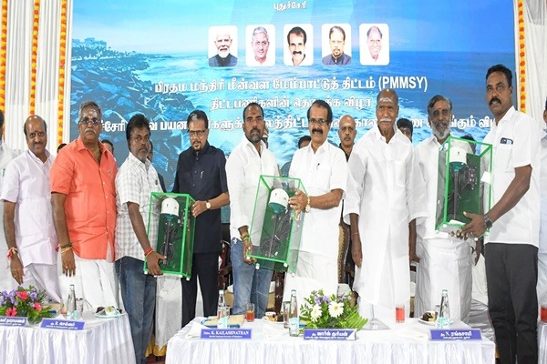 | 10 | George Kurian Inaugurates Fisheries Projects In Puducherry | Union Minister of State for Fisheries, Animal Husbandry and Dairying, George Kurian has said that, country’s fish production rose to 184 lakh tonne from 95 lakh tonne under the NDA government in the past ten years. The Minister was speaking after inaugurating several projects under the Pradhan Mantri Matsya Sampada Yojana (PMMSY) in Puducherry today. Mr Kurian announced that transponders will be installed in 2,300 fishing boats in Puducherry under the scheme. These transponders will enable fishers to communicate with their families, seek emergency medical assistance, receive alerts when crossing international maritime boundaries, and get real-time information on fish availability. The Minister also highlighted the Centre’s substantial financial commitment to the fisheries sector, including 3,000 crore rupees under the Blue Revolution. He added that fishermen can now avail up to 5 lakh rupees in credit under the Kisan Credit Card scheme. Puducherry Lt. Governor K. Kailashnathan, Chief Minister N. Rangasamy, Legislative Assembly Speaker R. Selvam, Ministers, and MLAs also attended the event. |