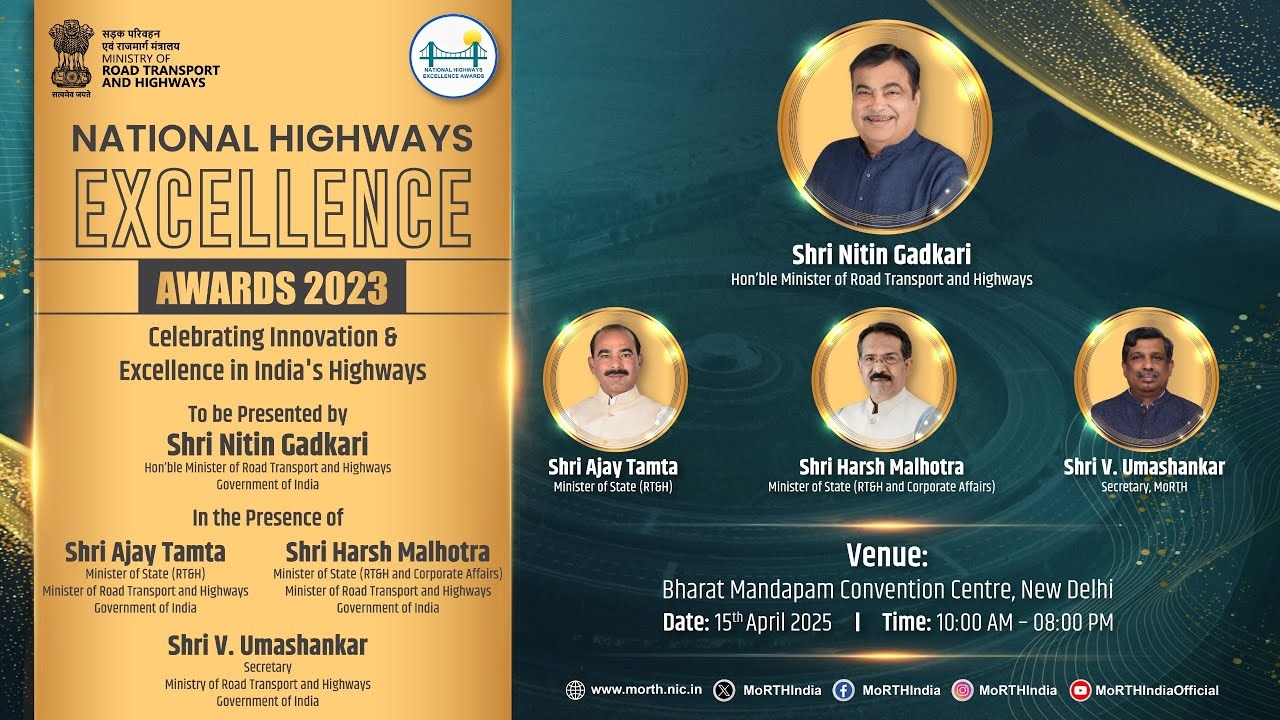 | 4 | National Highways Excellence Awards 2023 | To recognize professionals delivering excellence in National Highway development, the sixth edition of ‘National Highways Excellence Awards 2023’ (NHEA 2023) were held at Bharat Mandapam in New Delhi. Hon'ble Minister for Road Transport and Highways, Shri Nitin Gadkari along with Shri Harsh Malhotra, Hon’ble Minister of State and Dr V.K. Saraswat, Member, NITI Aayog; senior officials from MoRTH, NHAI and other stakeholders were present on the occasion. NHEA 2023 commemorated various officials and concessionaire/contractors for their innovation and exceptional performance. Out of total 125 nominations, 22 entries were shortlisted by the jury through multiple assessment rounds and five awards for outstanding projects were awarded in different categories. In the ‘Excellence in Project Management (PPP) category, the winner H.G. Infra Engineering Ltd was conferred with the Silver Award for the project Ateli Mandi to Narnaul section of NH-11 & Narnaul Bypass as an economic corridor in Haryana. Under the ‘Excellence in Project Management (EPC)’ category, Bhartia Infra Projects was awarded the Silver Award for Hakanjuri to Khonsa section of NH-315A in Arunachal Pradesh. The ‘Excellence in Operation & Maintenance (Flexible)’ category had Nanguneri Kanyakumari Tollway Pvt Ltd being bestowed with the Gold Award for Madurai to Kanyakumari of NH-7 Package 4 in Tamil Nadu. In the Green Highways category, Ashoka Buildcon Ltd won the Gold award for Kandi to Ramsanpalle section of NH-161 in Telangana and Deccan Tollways Ltd won the Silver Award for Maharashtra-Karnataka border to Sangareddy section of NH-65 in Karnataka and Andhra Pradesh. |