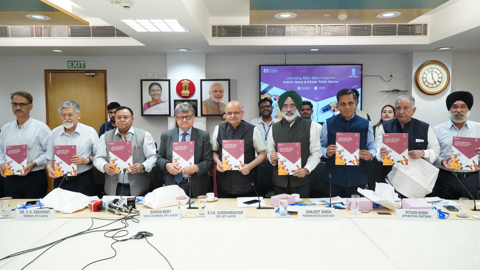 | 3 | NITI Aayog launches Report on ‘Unlocking $25+ Billion Export Potential - India’s Hand & Power Tools Sector’ | NITI Aayog launched a report on Hand and Power tools sectors – ‘Unlocking $25+ Billion Export Potential - India’s Hand & Power Tools Sector’. The report underscores the transformative potential of hand and power tools industry for India’s economic growth, delving into the challenges, policy headwinds, and necessary interventions vital for strengthening the Indian hand and power tool ecosystem. It outlines a strategic path for the sector to enhance its global competitiveness and capture a significantly larger share of the international market. The report was launched by Shri Suman Bery, Vice Chairman, NITI Aayog in the presence of Dr. V.K. Saraswat, Member, Dr. Arvind Virmani, Member, and Shri BVR Subrahmanyam, CEO, NITI Aayog. The report suggests that the global trade market for power and hand tools, currently valued at approximately $ 100 billion, is projected to grow significantly, reaching around $ 190 billion by 2035. Within this market, hand tools account for $ 34 billion and are expected to expand to $ 60 billion by 2035, while power tools, including tool accessories, represent $ 63 billion and are anticipated to surge to $ 134 billion, with electrical tools comprising the majority. China dominates global exports, holding about 50% of the hand tools market with $ 13 billion and 40% of the power tools market with $ 22 billion, whereas India has a smaller presence, exporting $ 600 million in hand tools (1.8% market share) and $ 470 million in power tools (0.7% market share). |