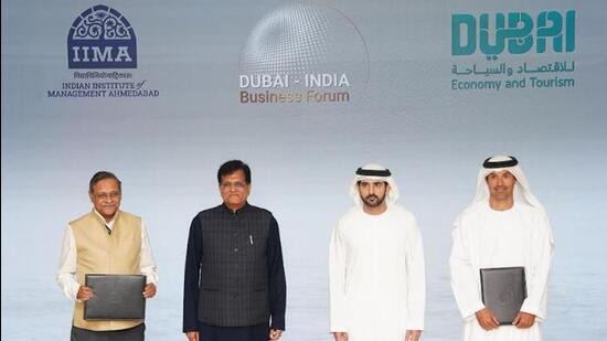 | 10 | IIM Ahmedabad signs MoU with UAE to set up first international campus in Dubai | The Indian Institute of Management Ahmedabad (IIMA) on Wednesday signed an agreement to set up its Dubai branch campus at the Dubai International Academic City (DIAC) and the commencement of the full-time one-year master’s in business administration (MBA) programme in September 2025. IIMA director Bharat Bhasker signed the Memorandum of Understanding (MoU) with Helal Saeed Almarri, director general of Dubai’s department of economy and tourism in Mumbai on Tuesday for the establishment of the IIMA Dubai campus. The MoU was signed in the presence of commerce and industry minister Piyush Goyal and Sheikh Hamdan bin Mohammed bin Rashid Al Maktoum, Crown Prince of Dubai who is on his first official visit to India as the crown prince. |