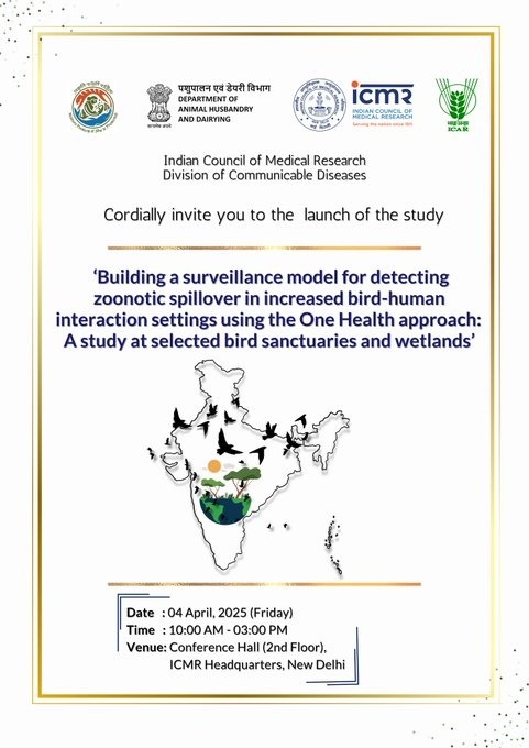 | 4 | Govt to develop real-time surveillance model to detect & diagnose zoonotic diseases | India will launch a pioneering inter-ministerial scientific study to address zoonotic spillover risks at the human- wildlife- environment interface. This unique study will be conducted in select bird sanctuaries and wetlands across Sikkim, Maharashtra and Tamil Nadu, leveraging the One Health approach to monitor the health of both human populations and migratory bird species. Union Health Ministry said, the comprehensive research project aims to develop a real-time surveillance model to detect and diagnose zoonotic diseases in bird sanctuary workers and nearby residents. The Ministry said, a study at selected bird sanctuaries and wetlands was launched at the Indian Council of Medical Research Headquarters in New Delhi today. |