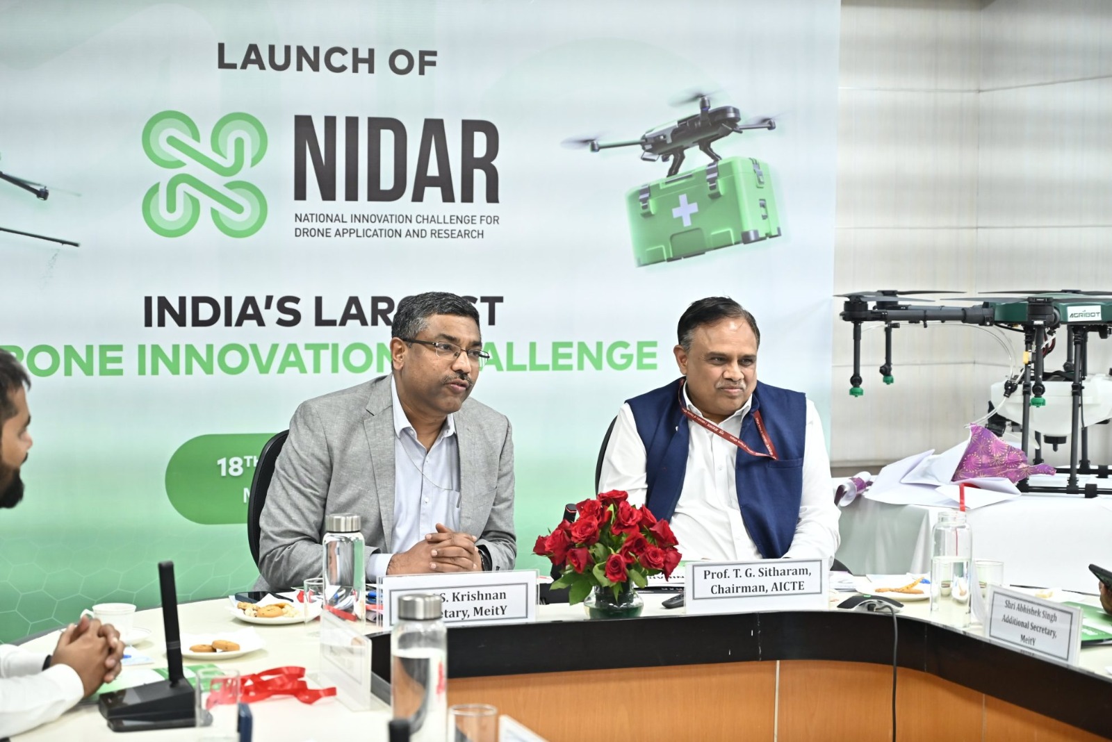 | 4 | MeitY And Drone Federation India Launch NIDAR Challenge For Drone Innovation | The Ministry of Electronics and Information Technology (MeitY), in partnership with Drone Federation India (DFI), has launched the National Innovation Challenge for Drone Application and Research (NIDAR) as part of the ‘SwaYaan’ initiative, focusing on building human resource capacity in Unmanned Aircraft Systems (UAS). The initiative was announced in an official statement by MeitY on Tuesday. The launch event, held at Electronics Niketan, MeitY, was attended by government officials, industry leaders, and students from across the country via video conferencing. S. Krishnan, Secretary of MeitY, inaugurated the challenge by unveiling a concept video, launching the official website and registration portal (https://nidar.org.in), and releasing the NIDAR poster and rulebook. In his keynote address, Krishnan highlighted the transformative potential of drones across key sectors such as agriculture, disaster management, logistics, healthcare, and infrastructure. He stressed that the NIDAR initiative would significantly contribute to India’s goal of becoming a global drone hub by 2030. “The NIDAR program is crucial to advancing drone technology on a larger scale and fostering the innovation required to tackle real-world challenges,” said Krishnan. |