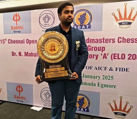 | 6 | Iniyan Panneerselvam clinches Johor International Open chess tournament title | Indian Grandmaster Iniyan Panneerselvam has clinched the 9th Johor International Open chess tournament title in Malaysia with a dominating performance. Iniyan defeated Vietnamese GM Nguyen Van Huy in the final round in an impressive performance. The 22-year-old Grandmaster from Erode in Tamil Nadu accumulated 8.5 points in nine rounds of the tournament. He outperformed four International Masters and one Grandmaster, finishing 1.5 points ahead of his closest competitor in a field of 84 participants from 8 countries. |