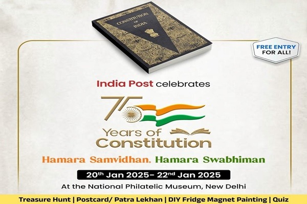 | 5 | Dept of Posts organizes 3-day event to celebrate 75 years of India’s Constitution | The Department of Posts has organized a three-day event to mark the celebration of 75 Years of the adoption of the constitution of India in New Delhi. The event is taking place at the National Philatelic Museum and offers a variety of fun and engaging activities for visitors of all ages. It aims to engage citizens in reflecting on the values enshrined in the Constitution while fostering a sense of unity and national pride. During the celebration, an exhibition, quiz, stamp safari and letter-writing competition will be organised. |
