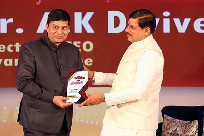 | 4 | Dr. AK Dwivedi Presents His New Book, Homeopathy for Anemia to Madhya Pradesh CM Dr. Mohan Yadav | Dr. AK Dwivedi, a renowned senior homeopathic physician and a prominent figure in the medical community, recently presented his new book, Homeopathy for Anemia, to Madhya Pradesh Chief Minister Dr. Mohan Yadav. The formal handover took place during an event in Indore, where Dr. Dwivedi shared insights from the book and discussed its potential impact on both patients and medical professionals. Dr. Dwivedi, who holds key positions such as a member of the Executive Council at Devi Ahilya Vishwavidyalaya, Indore, and the Board of Studies for Homeopathy under the Madhya Pradesh Medical Science University, as well as the Central Homeopathy Research Council under the Ministry of AYUSH, emphasised the book's focus on successfully treating aplastic anaemia—a severe condition often considered more critical than cancer—through homeopathy. Chief Minister Dr. Mohan Yadav expressed admiration for Dr. Dwivedi’s contributions, acknowledging the book as a valuable resource for the healthcare community in understanding and managing life-threatening forms of anemia. He commended Dr. Dwivedi for his ongoing efforts to advance homeopathic treatments and urged him to continue his pioneering work. |