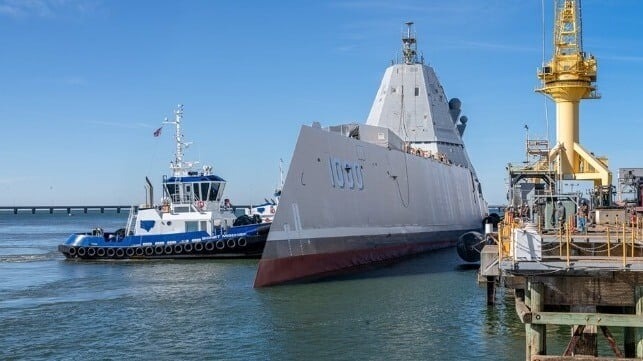 | 7 | Ingalls Removes USS Zumwalt's Iconic Guns, Installs Hypersonic Missiles | The unique destroyer USS Zumwalt is back in the water after a yearlong drydocking at Ingalls Shipbuilding. The yard has removed the vessel's iconic twin cannon turrets and replaced them with a weapons system more suitable for high-end modern conflict - the Conventional Prompt Strike hypersonic missile, or CPS. The U.S. Navy's futuristic Zumwalt-class destroyers were built to carry twin high-velocity cannons for shore bombardment, and these extra-large vessels resemble a sleek and stealthy version of a battleship. The number of ships in the class was cut back from 32 to three due to cost overruns, and the cost per round of manufacturing the specialized ammunition for the deck guns rose to an impractical $800,000-$1 million per shot. The production run for these costly high-speed shells was canceled, making the guns unusable. |