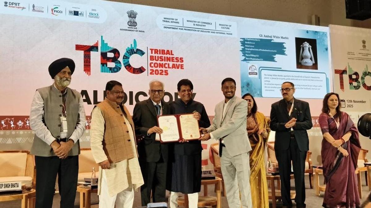 | 9 | Ambaji marble secures GI tag for its distinctive white stone | Marble from Ambaji, Gujarat’s prominent pilgrimage site and Shaktipeeth, has been awarded the Geographical Indication (GI) tag for its high-quality white stone, an official said on Friday (November 14, 2025). The Geographical Indications Registry under the Ministry of Commerce and Industry has granted the tag in the name of the Ambaji Marbles Quarry and Factory Association in Banaskantha district. A GI tag recognises products that possess unique qualities or characteristics linked to their geographical origin. |