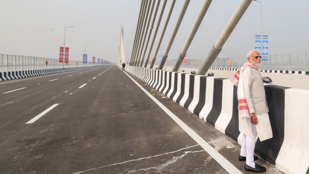 | 2 | PM Modi inaugurates Brahmaputra bridge, Northeast’s first highway emergency landing facility in Assam | Prime Minister Narendra Modi on Saturday inaugurated a series of major infrastructure projects in Assam, including the Kumar Bhaskar Varma Setu over the Brahmaputra River in Guwahati and the Northeast’s first Emergency Landing Facility (ELF) on a national highway in Dibrugarh district. The projects are part of a broader development push in the region, with the Prime Minister set to inaugurate and flag off initiatives worth over ₹5,450 crore aimed at boosting connectivity, digital infrastructure, higher education and urban mobility. Kumar Bhaskar Varma Setu to Transform Guwahati Connectivity At around 1 pm, the Prime Minister inspected and inaugurated the Kumar Bhaskar Varma Setu, a 2.86-km-long, six-lane extradosed Prestressed Concrete (PSC) bridge built at a cost of approximately ₹3,030 crore. |