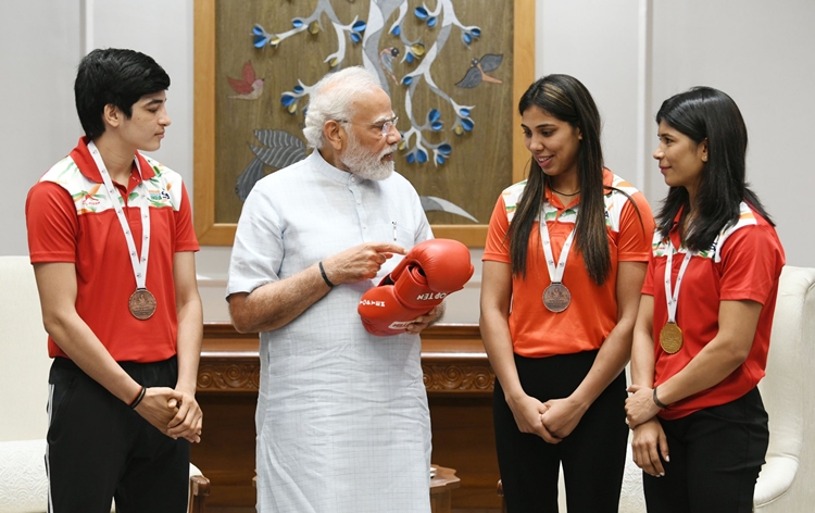 | 7 | PM Modi meets women boxers Nikhat Zareen, Manisha Moun and Parveen Hooda | Prime Minister Narendra Modi met women boxers Nikhat Zareen, Manisha Moun and Parveen Hooda yesterday, the medal winners at the recently concluded World Boxing Championships. |