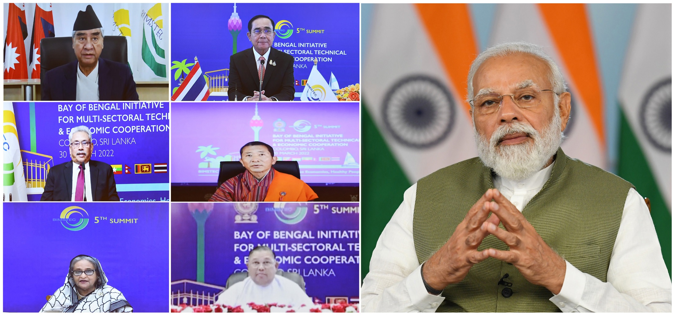| 4 | PM Modi attends 5th BIMSTEC Summit | Prime Minister Narendra Modi on Wednesday participated in the 5th BIMSTEC (Bay of Bengal Initiative for Multi-Sectoral Technical and Economic Cooperation) Summit hosted in virtual mode by Sri Lanka, the current chair of BIMSTEC. Prior to the 5th BIMSTEC Summit, preparatory meetings at the Senior Official and Foreign Minister levels were held in Colombo on 28th and 29th March in the hybrid mode. The Summit’s theme “Towards a Resilient Region, Prosperous Economies, Healthy People” captures the main current priorities of member states, and the efforts by BIMSTEC to develop cooperation activities that support member state’s programmes to deal with the economic and development consequences of the Covid-19 pandemic. The main outcome of the Summit was the adoption and signing of the BIMSTEC Charter, which formalizes the grouping into an organization made up of members states that are littoral to, and dependent upon, the Bay of Bengal. |