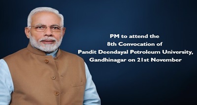 | 9 | PM Modi virtually inaugurates five state-of-the-art facilities to mark 8th convocation of PDPU at Gandhinagar | Prime Minister Narendra Modi has virtually inaugurated five state-of-the-art facilities to mark the eighth convocation of Pandit Deendayal Petroleum University - PDPU at Gandhinagar today. |