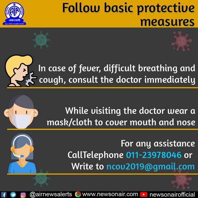 | 8 | Follow basic protective measures to contain spread of COVID-19: Health Ministry | Ministry of Health & Family Welfare has advised people to follow basic protective measures so that they can keep themselves safe from the Novel Coronavirus. People should avoid participating in large gatherings. |