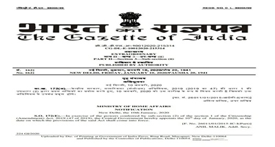 | 10 | Government issues notification to bring Citizenship Amendment Act into effect | The Citizenship (Amendment) Act has come into effect from yesterday. The Centre has issued a gazette notification in this regard. The notification said, the Central Government appoints the 10th day of January, 2020 as the date on which provisions of the Act will come into force. According to the Act, members of six minority communities who have come to India from Pakistan, Bangladesh and Afghanistan till December 31, 2014 facing religious persecution there will not be treated as illegal immigrants. They will be given Indian citizenship. These communities are of the Hindus, Sikhs, Buddhists, Jains, Parsis and Christians . |