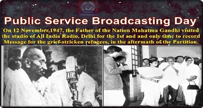 | 2 | Public Service Broadcasting Day to be celebrated today | Public Service Broadcasting Day will be celebrated today. The day is celebrated every year to commemorate the first and last visit of the Father of the Nation, Mahatma Gandhi to the studio of All India Radio, Delhi in 1947. |
