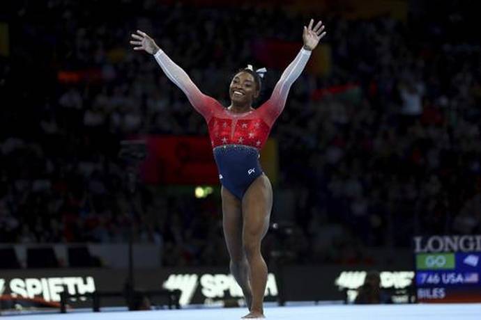 | 9 | Simone Biles wins 15th world title as US claims team gold | US gymnastics star Simone Biles clinched a record-extending 15th world championship gold medal on Tuesday as the Americans won the women’s team title in Stuttgart. Biles, 22, collected her 21st medal at the championships to become the most decorated women’s gymnast, taking her one clear of Russia’s Svetlana Khorkina. She also moved to within two medals of the all-time record held by Vitaly Scherbo of Belarus, a men’s gymnastics star in the 1990s. It was a fourth team title for Biles in an event the Americans have dominated for the last eight years. They claimed gold with a tally of 172.330, well ahead of the Russians, who took silver with 166.529, while bronze went to Italy on 164.796. Biles played a key role in a commanding performance by the USA, earning the most points in three of the four disciplines -- the vault, balance beam and floor. She earned a loud cheer for landing the “Biles II” skill -- a triple-twisting double back on the floor -- keeping her pre-championship promise to perform it in “every competition” in Stuttgart. Her huge tally of 15.333 led a US clean sweep in the floor exercises alongside team-mates Jade Carey and Sunisa Lee, to hand the Americans gold. Biles is expected to add more medals to her dazzling tally as the favourite in the women’s all-around final on Thursday and this weekend’s apparatus finals. |